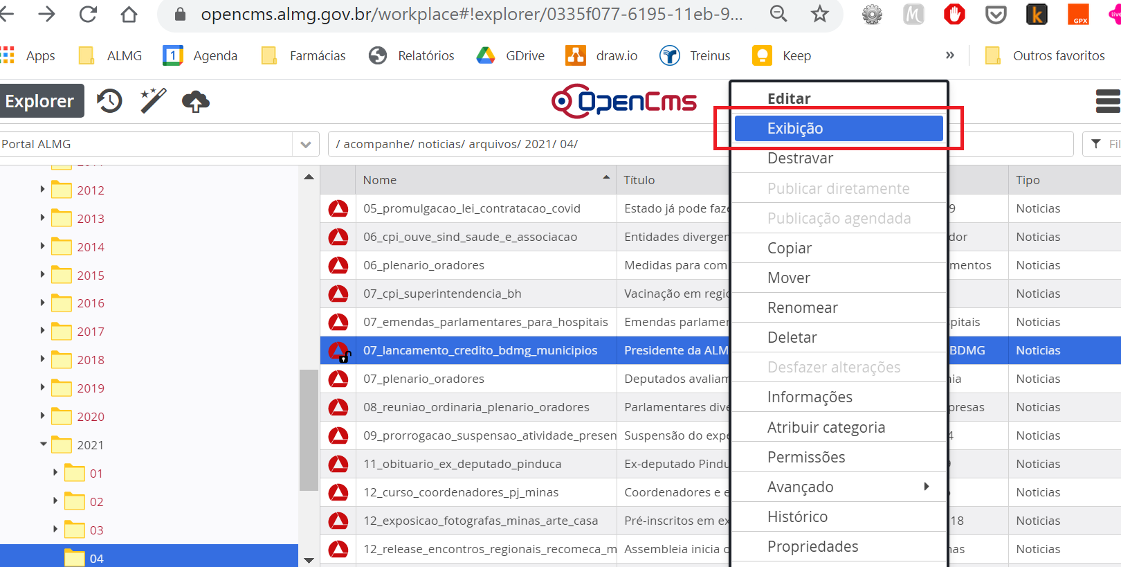 Uso de abas no navegador para alternar entre exibição e edição de conteúdo