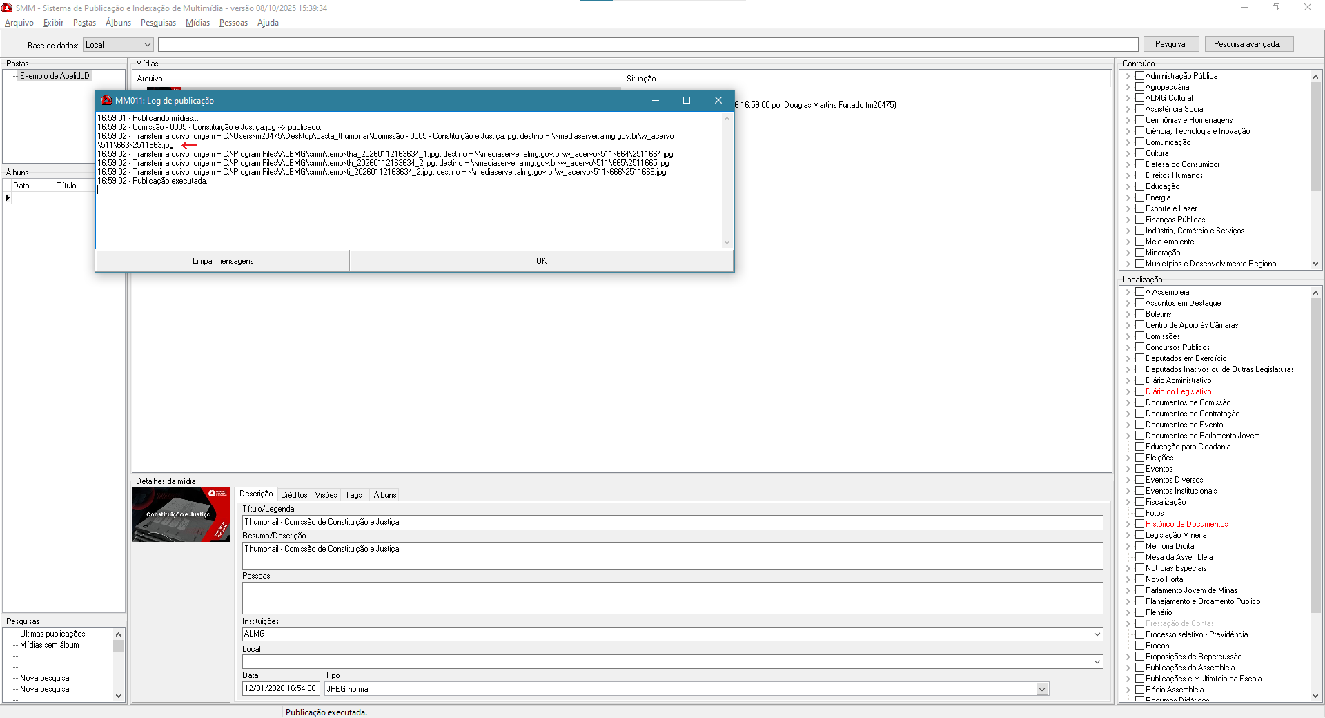 - Avalie o log de publicação e anote o número da mídia criada