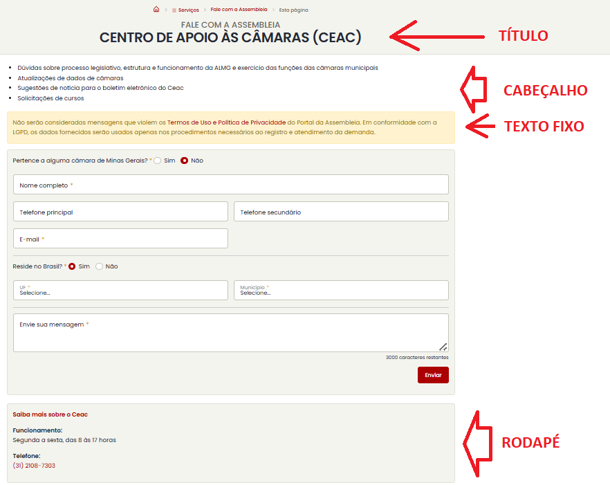 - Alterações na página principal da seção "Fale com a Assembleia" pois existem formulários que devem ser indicados nesta página e outros que não (esses últimos terão links apenas em outras páginas "chamadoras")