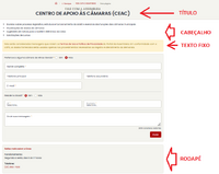 Os campos cabeçalho e rodapé permitem código HTML para melhor apresentação das informações na página do formulário, mas a formatação não é mostrada na tela do SIC para o operador do sistema. O código aparece ali "cru", com as tags HTML fazendo parte do texto. Por isso, é fundamental, ao passar para o CAC o código HTML a ser alimentado nesses campos, já tê-lo testado e já ter visto o efeito da formatação. O operador do SIC vai simplesmente copiar o código fornecido e colá-lo no campo da tela.¶
